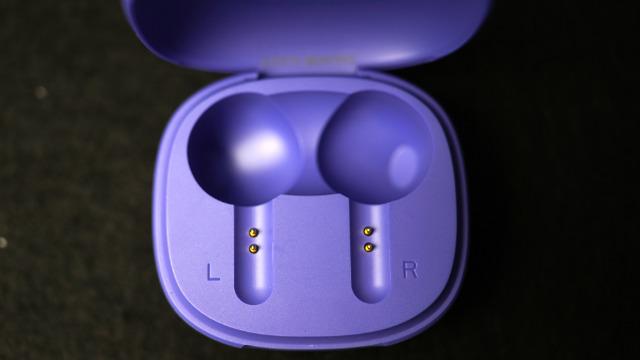 Type-c充電口則是在耳機充電艙的后面,不管是上蓋還是充電艙身,弧度的設(shè)計都比較大,這種設(shè)計可以提升耳機在手中的握持感。